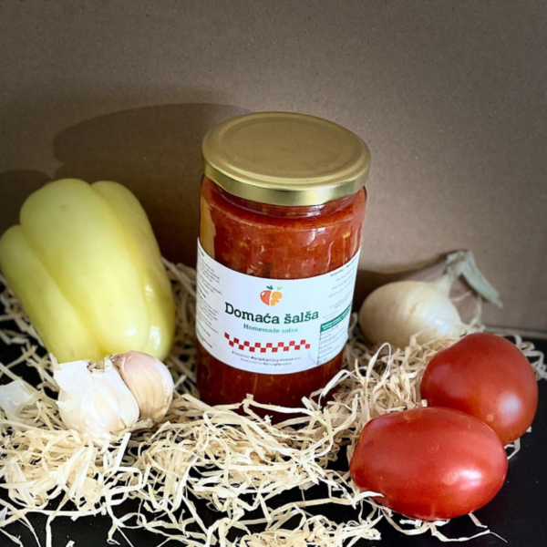 Tradicionalna šalša pripremljena od svježih rajčica iz povrtnjaka OPG-a Petra. Kuhana po domaćoj recepturi, bez aditiva i konzervansa, zadržava puni okus i miris ljeta u svakoj staklenci.